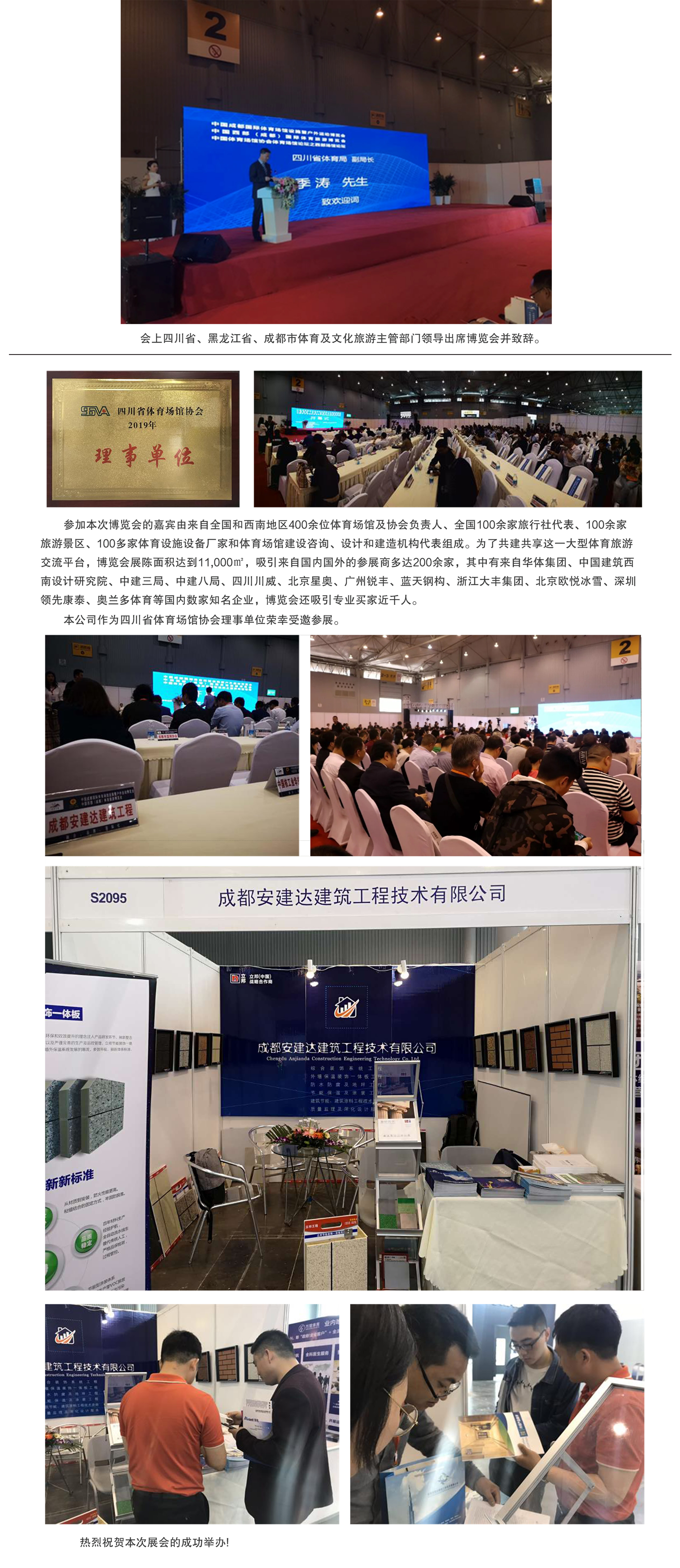 2019年4月19日,以“體旅聯動、助推西部(成都)體旅國際化”為主題的、會期三天的2019中國成都國際體育場館設施暨戶外運動博覽會&中國西部(成都)國際體育旅游博覽會在成都市正式拉開序幕。